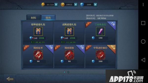 1.限时礼包。充值100就有个40的金色武器了,这样会开启一个限购的礼包。礼包是2999.里面有个5级宝石,50个精炼石,25个精炼药剂+100个冲星石。这个是必买的,肯定比你去商店买宝石划算。