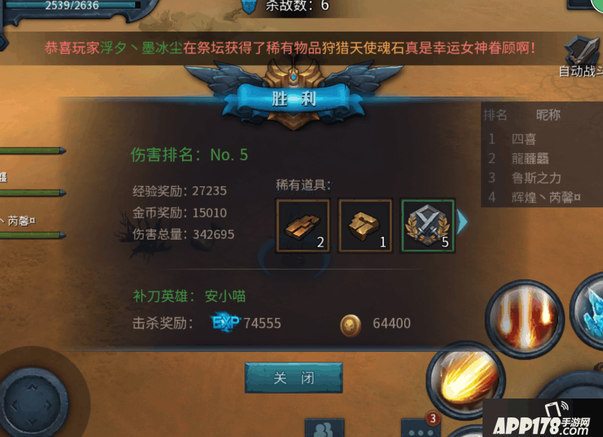 3.虽然BOSS经验奖励跟伤害排名有关,但是还是要先打人,你不打他,他们也打你的。毕竟有荣誉,后面还有魔石抢。