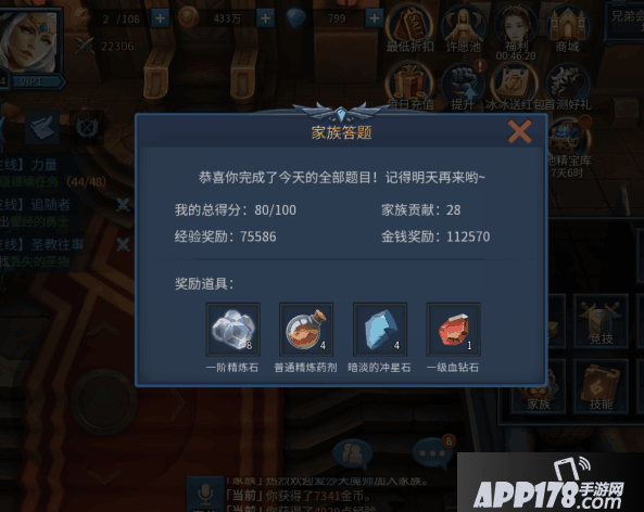 3.找个好的家族挺重要,后面有家族战,家族还能分享礼包,有经验跟钱还有宝石。