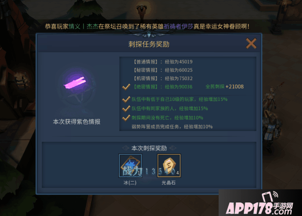 4.特别要说的是阵营任务的星数不光影响经验,还有荣誉跟阵营石头,推荐至少3星,不然奖励太低了。不用特别去弄5星没啥必要,这游戏用钻石的地方还多呢。