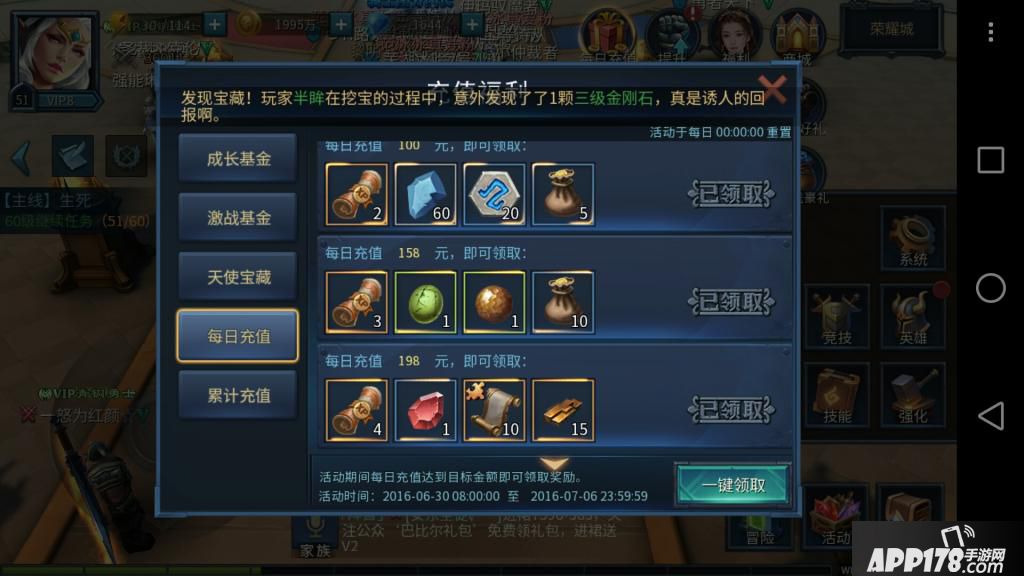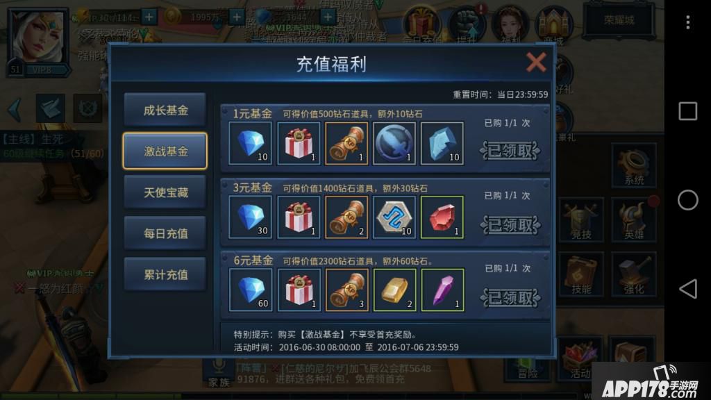 为什么说第2天成长基金呢,每日充值有额外奖励,最高每天是198.所以其实卡跟成长基金一天买浪费。