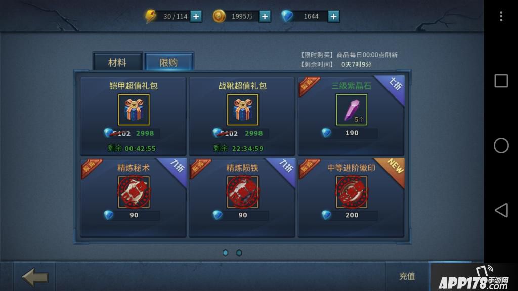 6.秘术跟陨铁看个人能力,因为打的很慢。但是买了之后你还是需要很多材料去升级,所以小R其实可以不买,咱钻石等限时礼包。