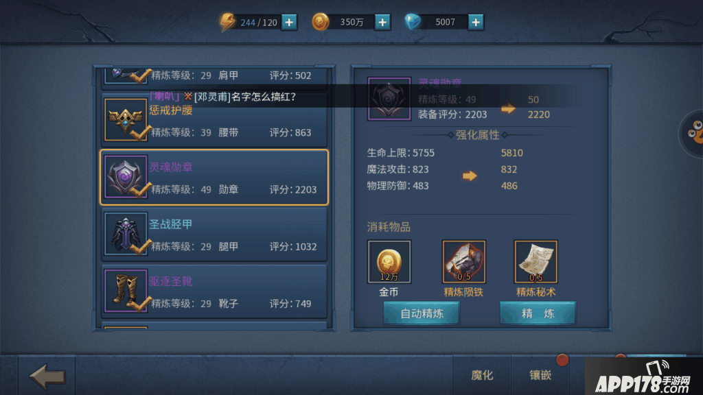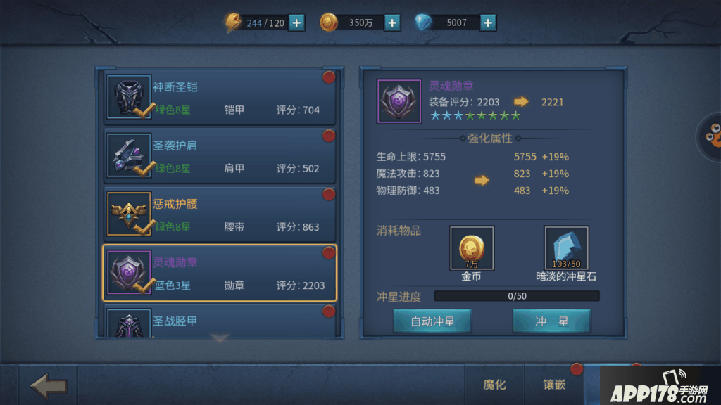 2、早期这件装备提供的主角属性还是不错的,精炼、升星一定要跟上啊。