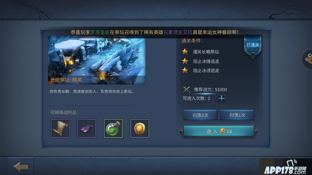 3、整个过程的最难点在六章的长眠祭坛精英本,号称“骑士止步”,三测期间据说很多无V,小V的骑士到61级也很难三星通过该关了。