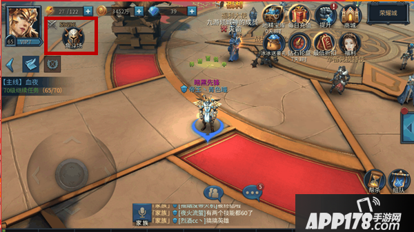 进入以后会出现在角斗场匹配大厅,这时你就会发现角色头像右边的图标变了。