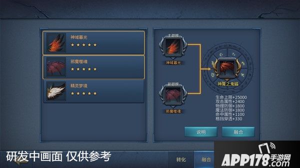 主翅膀:邪魔噬魂 副翅膀:神域暮光合成后为魔神之恶骨