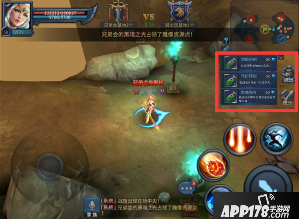 2.新增战场buff道具,新增了三种提升角色属性的道具:愤怒药剂,在战场中增加攻击力;守护药剂,在战场中增加防御力;灵魂药剂,提升生命回复和魔法回复。