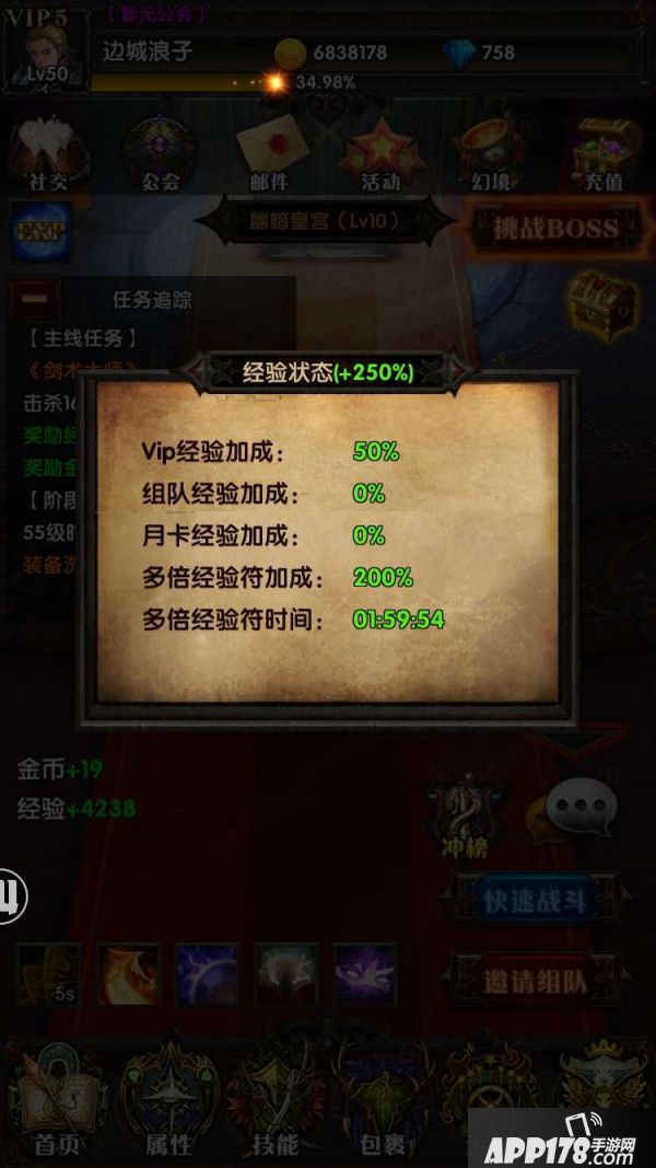 可以看到,目前除了VIP的经验加成外,其他加成都是0。