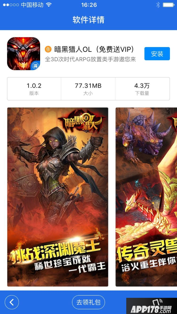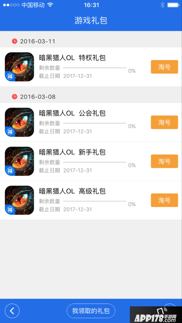 选中暗黑猎人OL游戏就进入到游戏详情页,这时候注意页面最下方有个“去领礼包”的选项,点击打开页面就会出现领取礼包的页面啦,可以看到有工会礼包,新手礼包,高级礼包等等,可惜小编来晚了,礼包被哄抢一空,听说后续可能会有新礼包补货哟,保持关注吧。