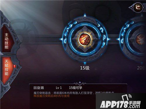 天赋技能可以在功能菜单中的技能里查询到。从15级至40级共有6个天赋技能,学习后会得到二段技能来配合玩家更好的施展技能连击。并且40级之前 的天赋技能是不需要消耗经验和金币的。