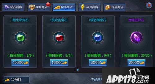 最后,来聊一聊金币商店,商店里面可以用金币买到各种宝石和宠物进阶石哦,这些都是非常有用的素材!