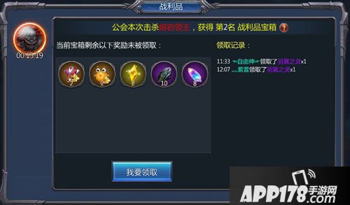 战利品,每天公会参与世界boss后,公会伤害排名前五名的公会都能获得战利品,战利品分为橙色到紫色道具不等,每个人通过抽奖的方式获得奖励。这个抽奖就只能看人品啦,无论是你是否参与活动,抽奖的概率都是相同的。如果公会里有高等级的玩家完成了高等级的世界boss,我们也可以抱大腿参与抽奖获得优质装备。是不是很爽呢。