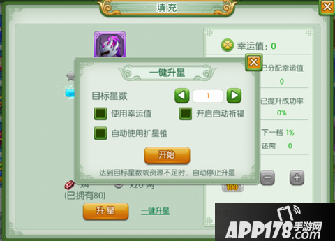 (5)一键升星功能:只需要输入希望达到的星数并且勾选材料就可以等着装备升星啦~是不是很方便呢~