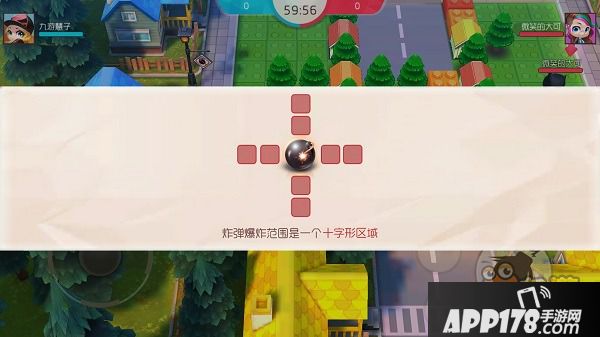 一开始炸弹的威力都是一样的,只能炸十字形的五个格子,而且每次只能放一个炸弹。从放炸弹到炸弹爆炸有3.5秒左右的时间,选手可以利用这段时间躲到安全区域,但是炸弹相当于一个路障,选手无法越过炸弹行走,所以当炸弹堵住你唯一的去路,那么你就只能乖乖地等着被炸……