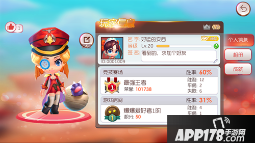 名片中玩家可以上场并展示自己的个人照片,并添加个性标签,展示自己所在的地区城市和星座等个性化信息,还能看到其他玩家给你的点赞哦~