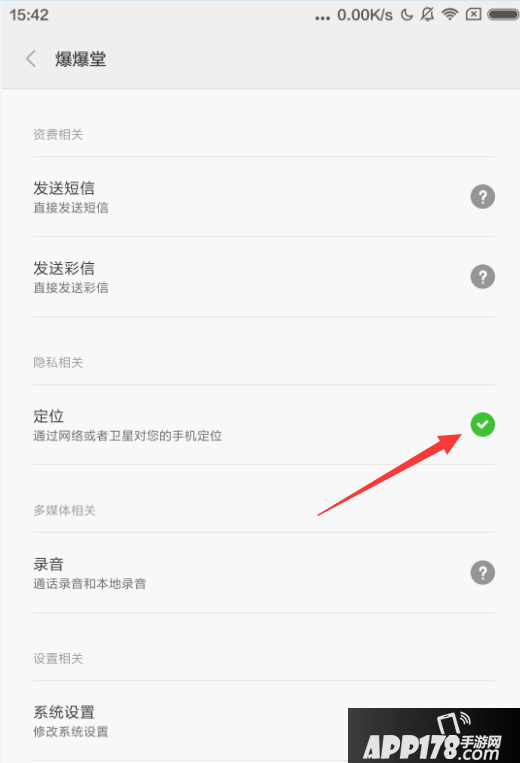 所以只需在手机设置中为《爆爆堂》开启位置获取权限即可~