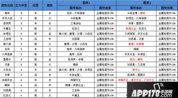 阵容的搭配要考虑神将的属性、战斗中的站位以及神将之间的羁绊关系,攻略君细心为大家准备了下表方便大家搭配神将。