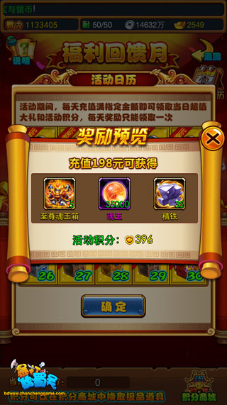 “福利回馈”,简单来说就是充很少的钱,获得大大的收益!玩家们可以很清楚的看到自己能获得什么,魂玉、神将、精铁等等各种稀缺资源,只有你想不到,没有暴打给不了的!!虽然是最简单粗暴的方式,但是以这么低廉的价格,小编看着都忍不住“土豪”一把啊!