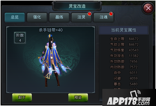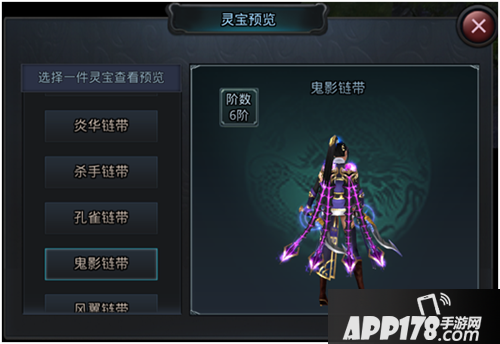 在总览界面中点击预览,可以查看各阶层的灵宝外观。