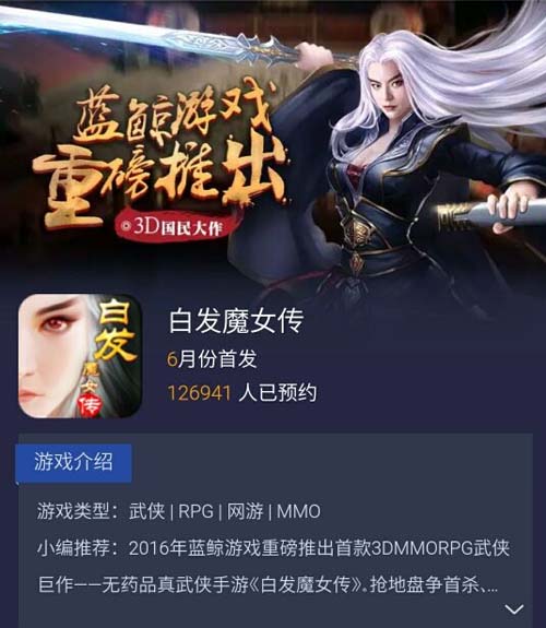 《白发魔女传》正版手游发行商蓝鲸游戏确认参展“2016年第十四届ChinaJoy”,打造泛娱乐时尚风格,吸引游戏玩家和游客驻足欣赏,引领重度手游新潮流,推进全民游戏娱乐。