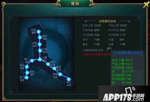 4.通过经脉系统画面可以查看通过经脉获得的额外属性;