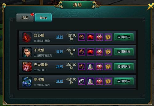 【玩法介绍】 点击活动界面即可查看各阶级世界BOSS所在地点以及刷新时间
