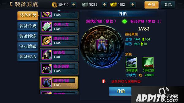 有了足够的材料就可以去进阶装备了,要是有多余的材料建议不要出售,每5个1级材料可以合成1个2级材料哦。