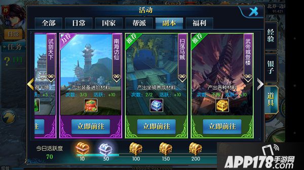参加活动的方法很简单,打开活动界面,选择副本,道具,然后往右划到最后就能看到了,点击立即前往参加吧。