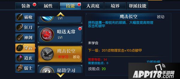 5鹰击长空:拥有雄鹰一般敏锐的眼睛,大幅度提高物理攻击和破甲