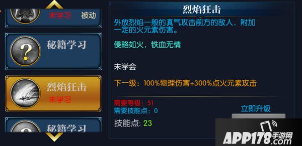 51可以学习的主动技能烈焰狂击