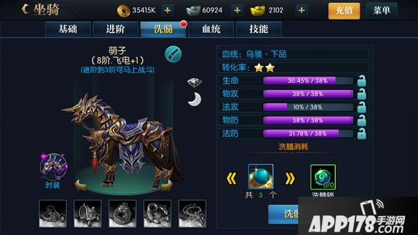 坐骑还有不同的血统可供将军选择,不同的血统成长加成也不同,适合不同的职业,将军可以选择最适合自己职业的血统来进行培养。血统品阶越高,坐骑的基础属性,成长率和转换率也会越高,特别推荐。
