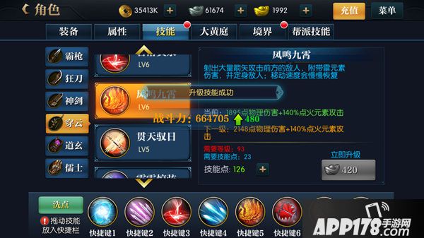 然后是技能系统,技能除了将军能在一定的等级获得的固定技能外,在41级61级81级还可以由将军自己选择学习技能,自己选择有1个主动技能和4个被动技能,将军可以自己搭配,百变随性。技能学习之后,将军获得技能点可以增加技能等级,增加技能等级的同时,也会增加大量战斗力。