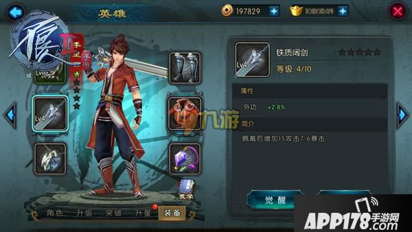 每位英雄都默认分配了一套装备,分为武器,衣服,帽子,鞋,项链,玉佩,玩家可以对这套装备进行升级、突破以及觉醒等操作来提升自己的战斗力及体验更多丰富有趣的玩法。