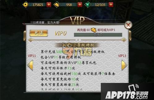 累计充值100000元宝可以达到VIP13