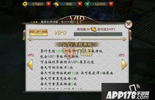 累计充值60元宝可以达到VIP1