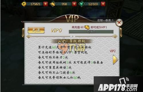 不良人2手游vip价格等级表怎么样呢,不同的vip等级需要的价格以及开放的特权又有哪些?下面APP178手游玉米就为大家带来详细的不良人2手游vip价格等级特权表,一起看看吧。