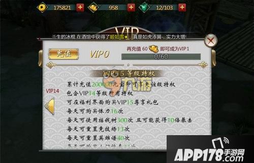 累计充值150000元宝可以达到VIP14