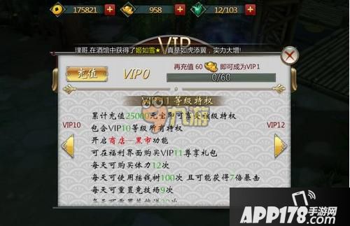 累计充值25000元宝可以达到VIP11,开启商店——黑市功能
