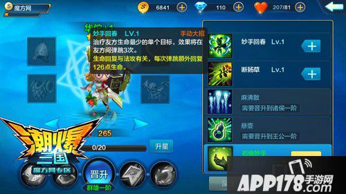 第一个技能妙手回春能够治疗友方生命的单个目标,还能够进行友方之间的弹跳。能够对于自己的队友进行一系列的加血效果,是一个标准的加血技能,能够进行有利的辅助效果。
