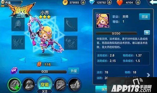 从他的初始属性看她的法攻成长非常高,物防成长一般,法防成长较高,生命成长一般,合理培养的话是一个非常给力的中排法术输出。