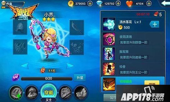1.流水落花:连续攻击4次,每次对中排随机单个目标造成法术伤害。(升级可提升伤害)