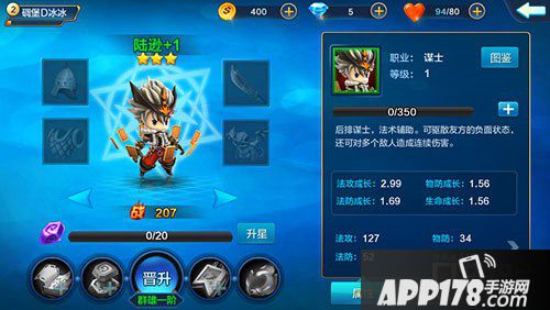 从他的初始属性看他的物防和生命成长数值均衡,作为后排谋士,法攻成长非常高,培养起来是一个非常强悍的后排法术辅助。