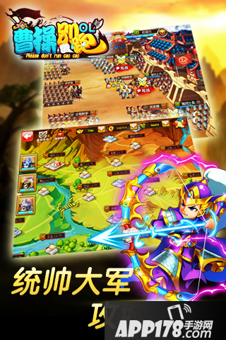 游戏介绍:《曹操别跑OL》是一款以曹操败走华容道为切入点的三国题材大型Q版即时策略卡牌游戏。全球首创的多战线作战模式,宏大的千人战场,新颖华丽的必杀技能,气势恢宏的国战战场,实景还原三国战图,包含多达210座城池,分魏、蜀、吴三个国家。玩家选择加入一个国家,自由地调兵遣将进行移动或攻击。最震撼的战斗玩法,呈现出最宏伟最壮观的三国战场,开创手游玩法新体验!