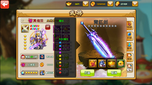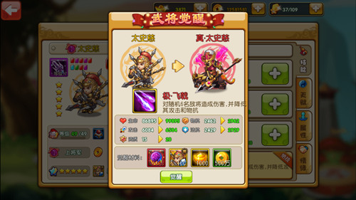 武将的觉醒需要有一定的条件,首先主公的爱将需达到满星,接下来需要再准备好觉醒的四大材料,觉醒丹、武将信物、元宝和铜钱。这些材料主公们可以在商店中直接购买,也可以在日常游戏活动中获得。觉醒之后的武将生命值、攻击、资质等等属性都将得到质的飞跃,并且外形也将变得超酷炫。当然这并不是结束,觉醒的武将将开启宝物系统,主公可以对武将的专属宝物进行打造,从而再次提升实力,可以说武将的觉醒就如同凤凰涅槃般浴火重生,大方光彩。