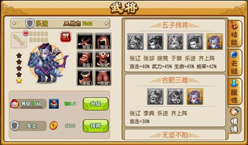 在《曹操别跑OL》4月25日的最新版本中,新添了一员大将乐进。作为五子良将之一,关于乐进的描写不管是“亲爹”西晋史学家陈寿所著《三国志》里还是“后妈”元末明初的著名小说罗贯中的《三国演义》里对其都并没有特别出彩的描述,但能作为五子良将之一必有过人之处,这点在《曹操别跑ol》实为显著,那么让小编扒一扒曹操手下第一猛将乐进。