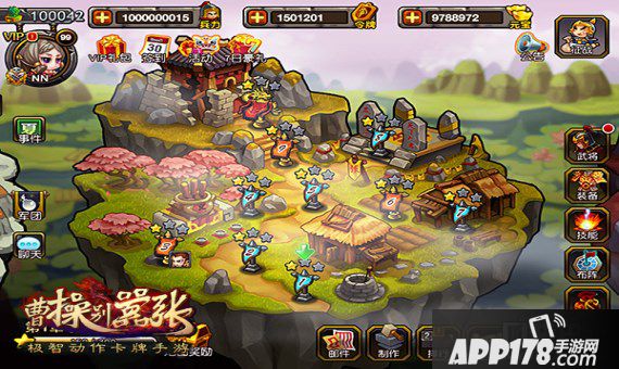 武将的摆放是这个游戏的精髓玩法之一,你可以使用传统的“前排+输出+奶”的组合,也可以采用“大招流”也就是各种群伤武将的搭配,还可以使用“秒杀流”等,在你武将池丰富后,更可以组合另类犀利阵容,谈笑间樯橹灰飞烟灭。