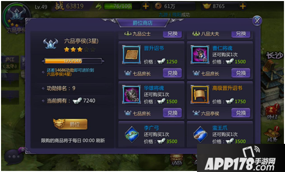 官银仅仅用于购买功勋商城中的物品,而爵位商城有军功、有宝物、有橙色卷轴、有紫色装备,可谓是豪华商城,如果有足够的官银及爵位权限,那绝对分分钟可以秒杀所有人——这,就是钱的便利——这就是权的好处.......是以大部分人都对这两者趋之若鹜,岂谁有真的知道,君子爱财取之有道,权授之于民的道理!