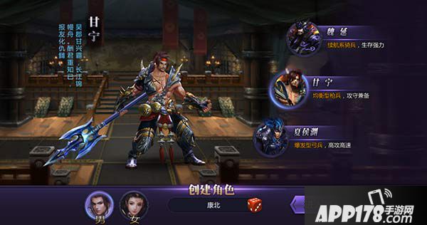 创建角色时有三种职业武将可选择,分别是: