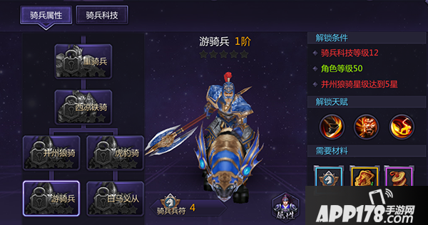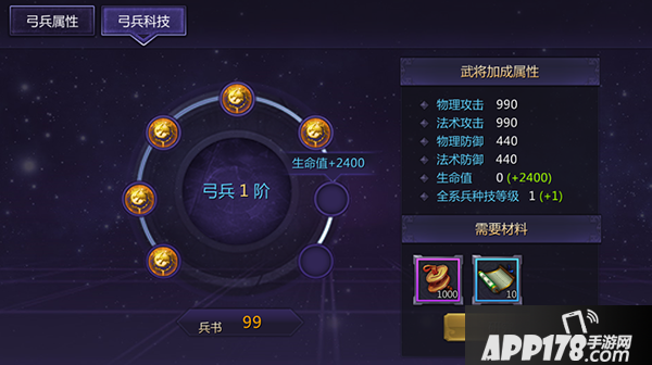 兵种可以通过升星来提升属性,兵种提升到5星后可以进化到下一阶段兵种,进化到高级兵种可以获得更高的属性、更高级的技能和更酷炫的兵种外形。通过兵种科技研究提升,可以为武将提供超高的属性加成。