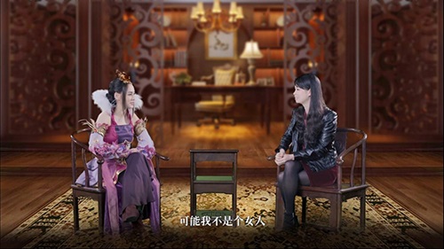 美女高管:粉丝都夸你扮演的男性角色很英气,像大唐女巡按、越光宝盒等等。那这一次在《超凡三国》中,一人分饰三个角色,而且其中两个都是男性扮相的,在拍摄过程中,觉得你诠释的特别好,形神兼具。那对于扮演男性角色有没有什么小窍门?